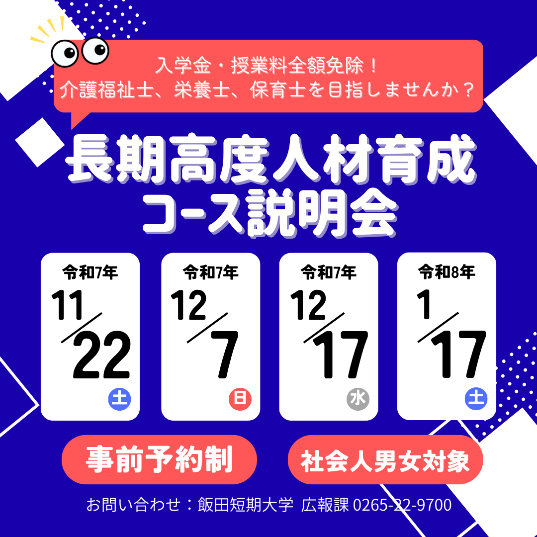 【介護福祉士・栄養士・保育士を目指す】長期高度人材育成コース説明会(社会人対象 入学金・授業料2年間免除+雇用保険手当受給 条件有り)