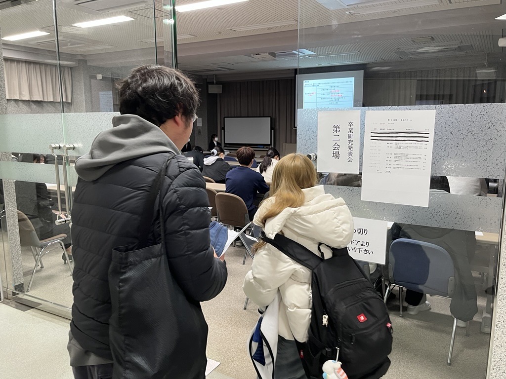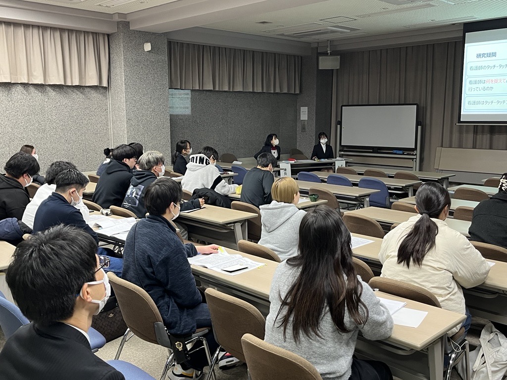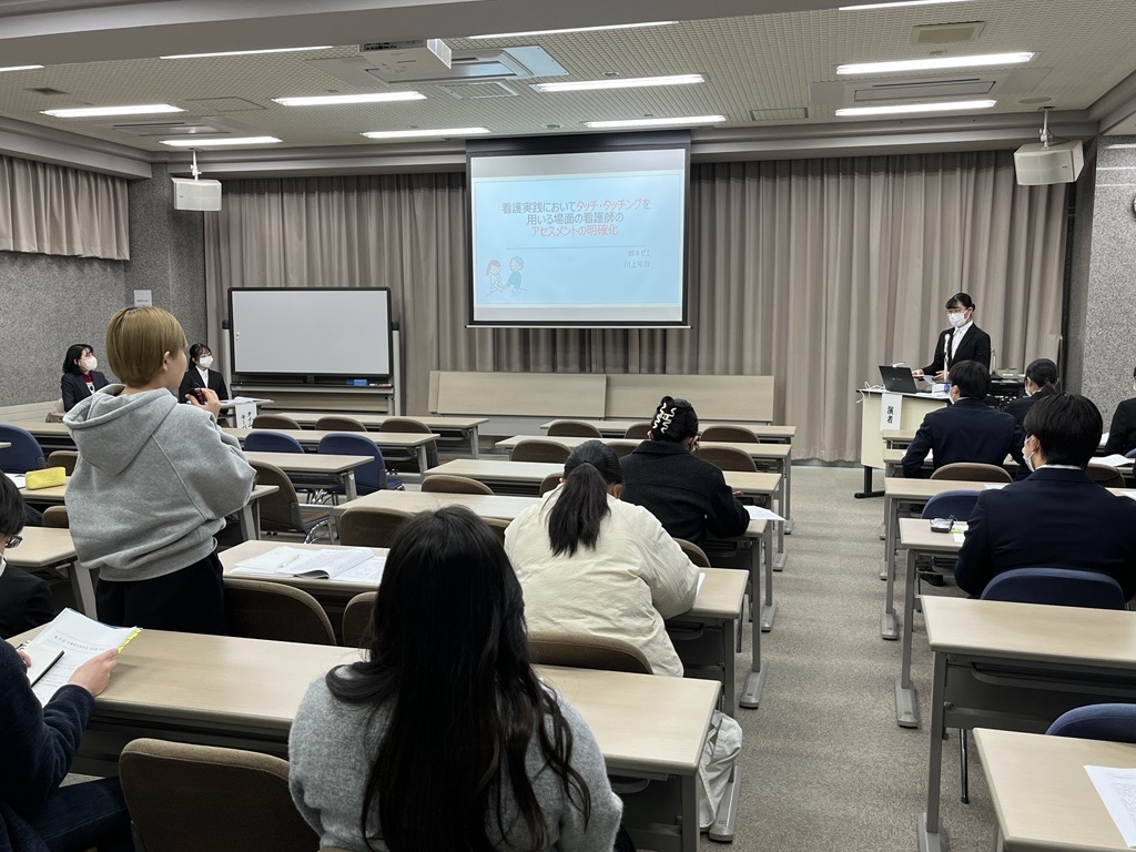 看護3年生は、春から続いた領域別実習と並行してゼミ教員指導の元、各々設定した「卒業研究テーマ」について研究を進めてきました。そんな看護3年生は学びの総まとめである「統合実習」を12月初旬に終えたばかり。息つく暇なく取り組んだ成果の発表(10分間)に向けてさらなる研鑽を重ね、卒業研究発表会に臨みました。
