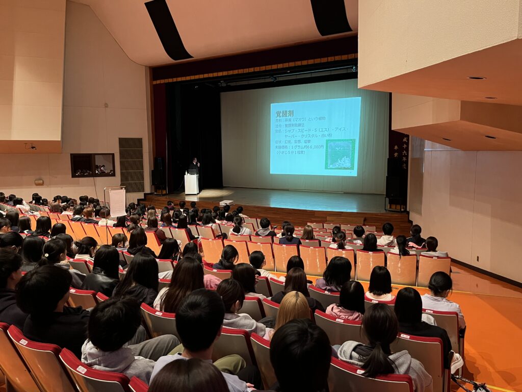 その後、「第1回学生生活支援講座」として長野県県警本部スクールサポーターの方による薬物乱用防止についての講演をお聞きしました。